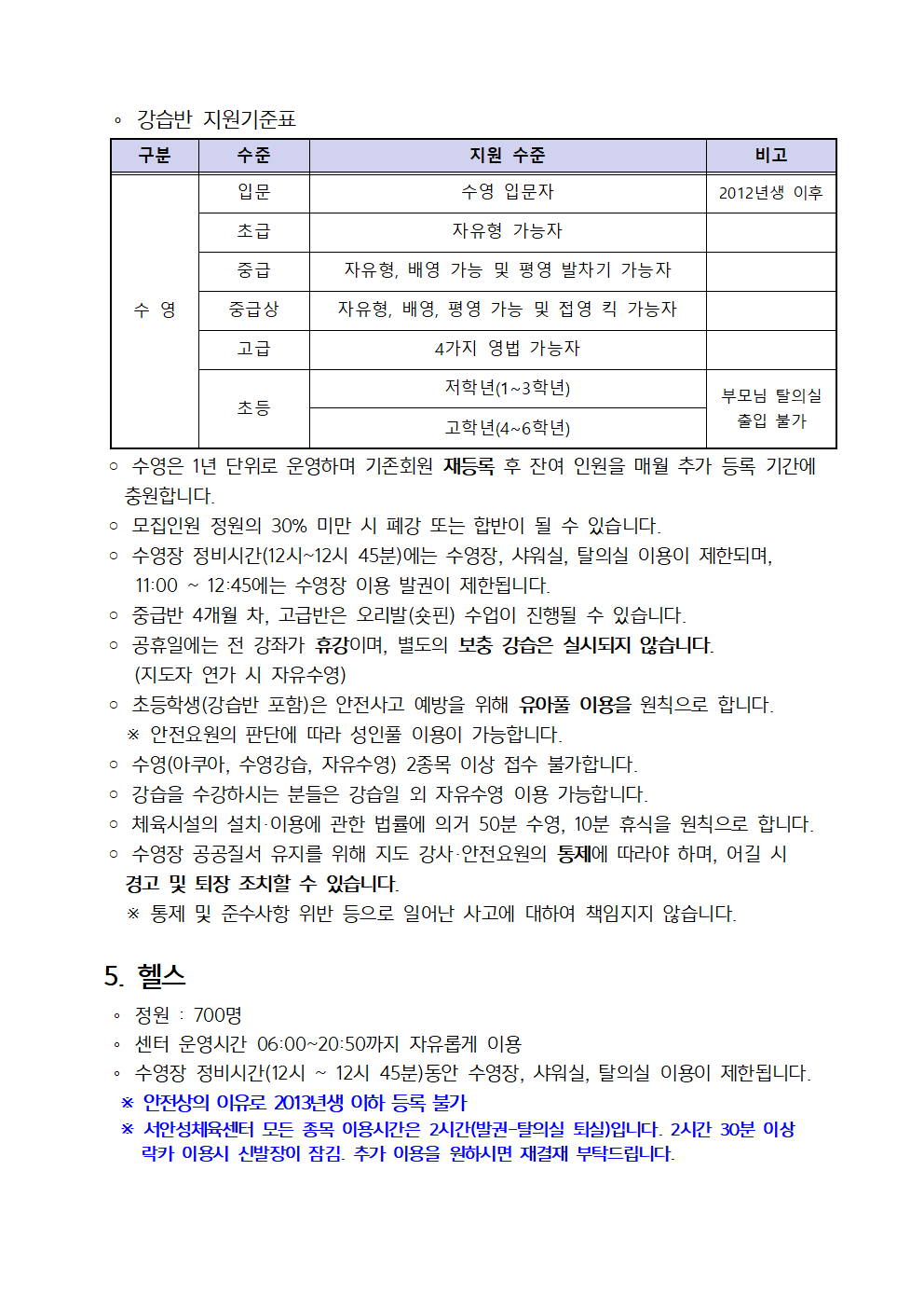 | 다음글 | 수영장 수조청소 및 시설보수로 인한 휴관 안내 |