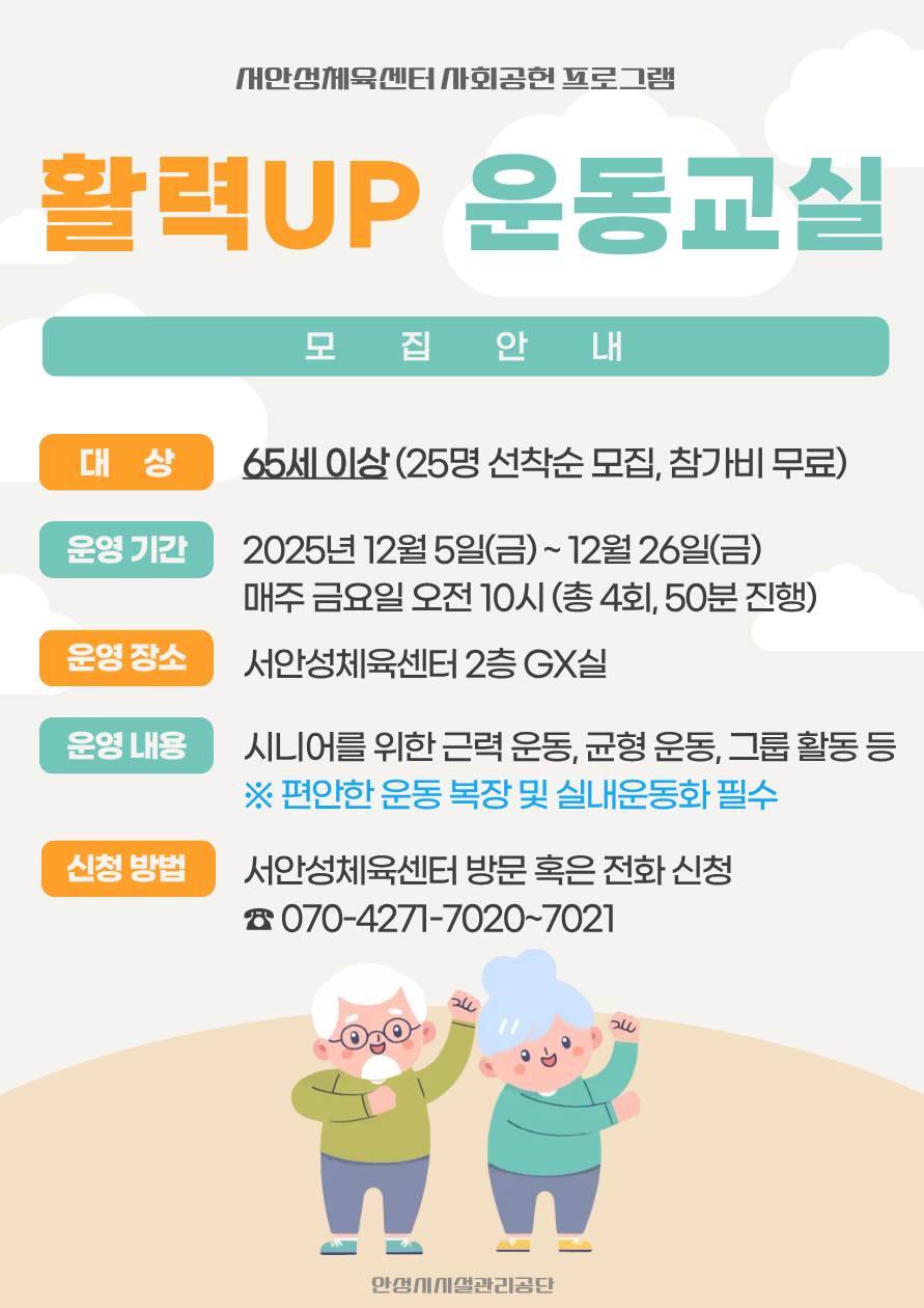 | 서안성체육센터 시니어를 위한 활력UP 운동교실 사회공헌프로그램 운영2025-11-14 | |||