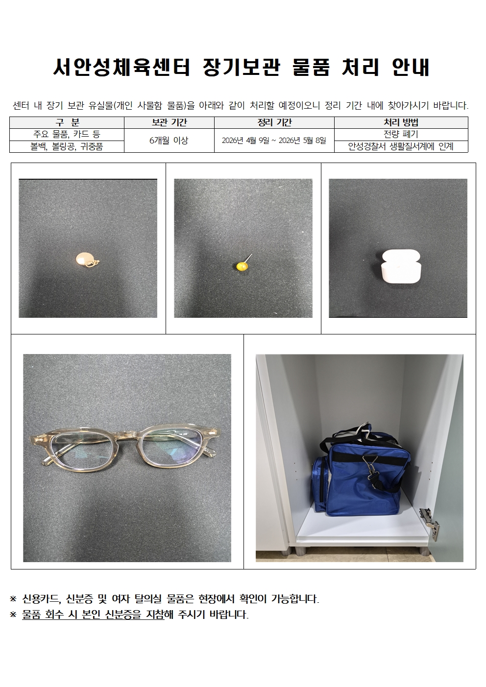 | 서안성체육센터 장기보관 물품 처리 안내2026-04-09 | |||