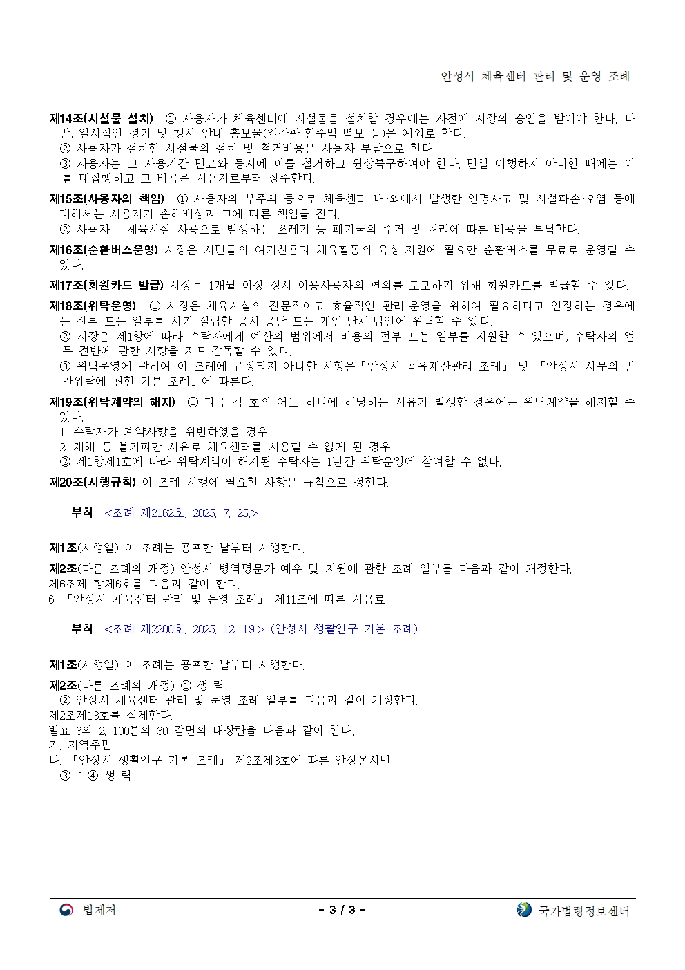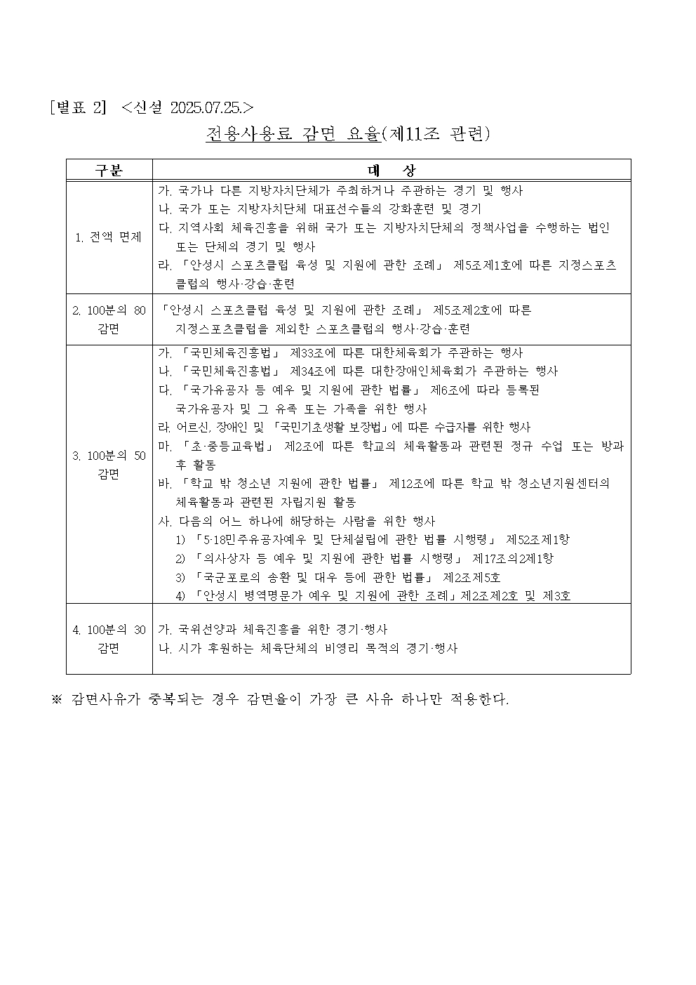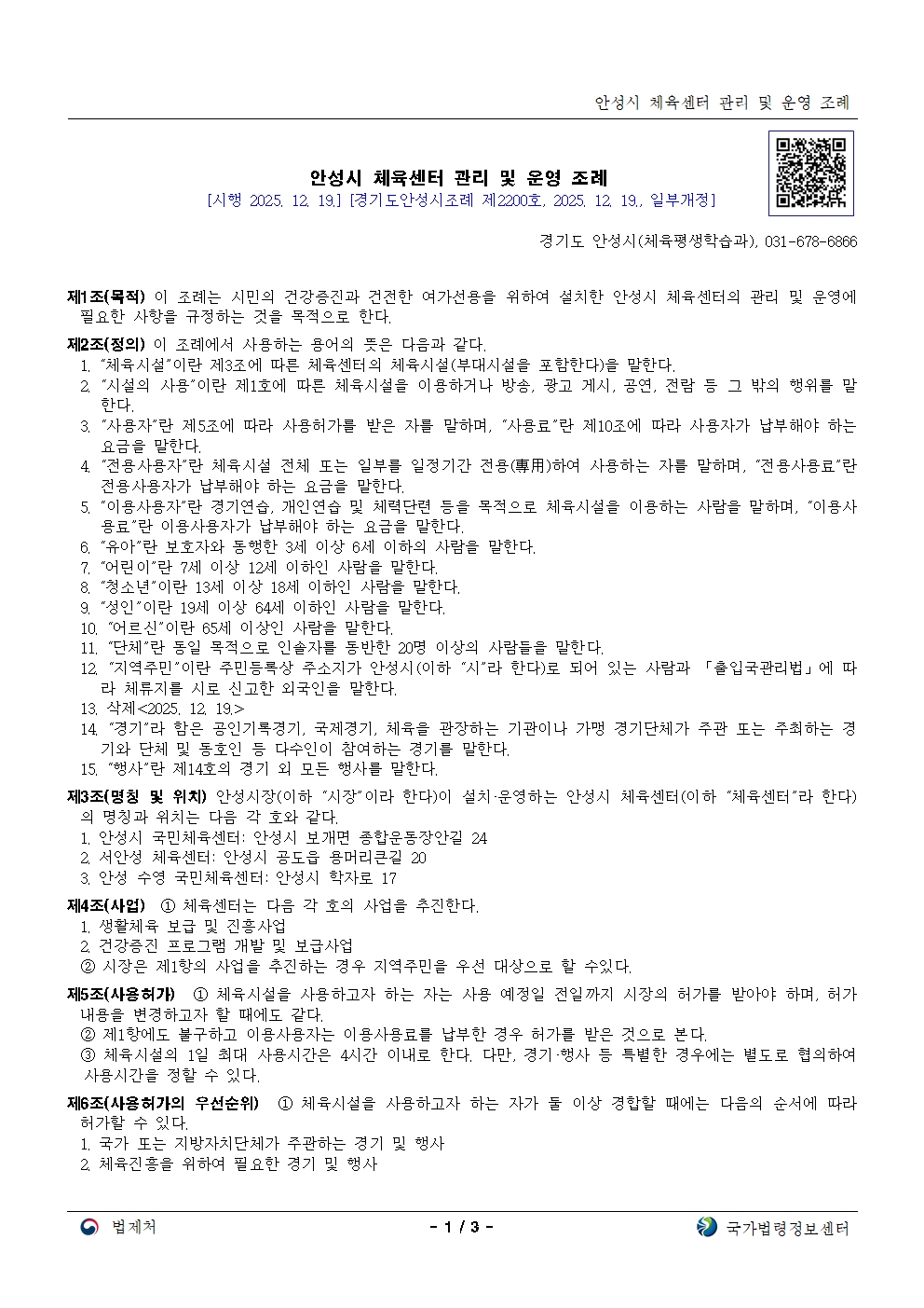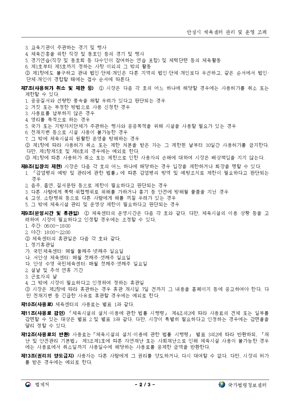 서안성체육센터 이용규칙