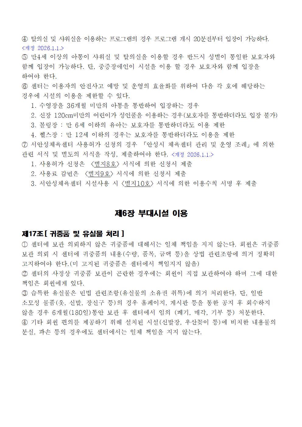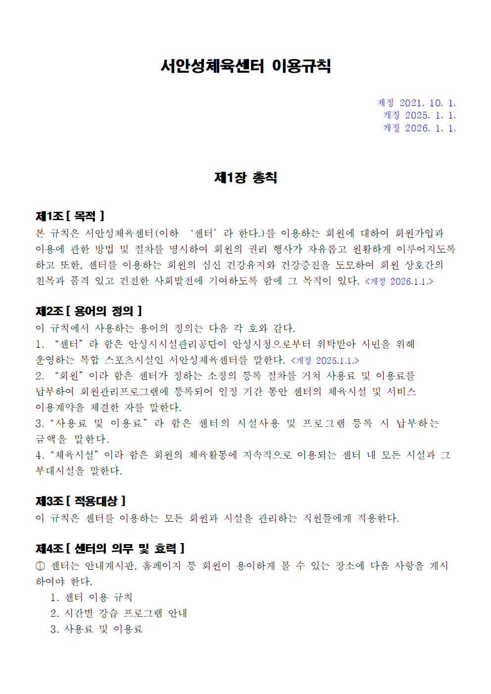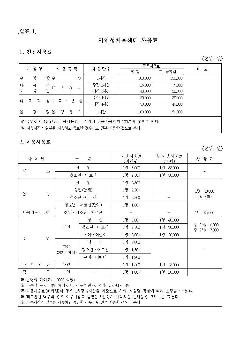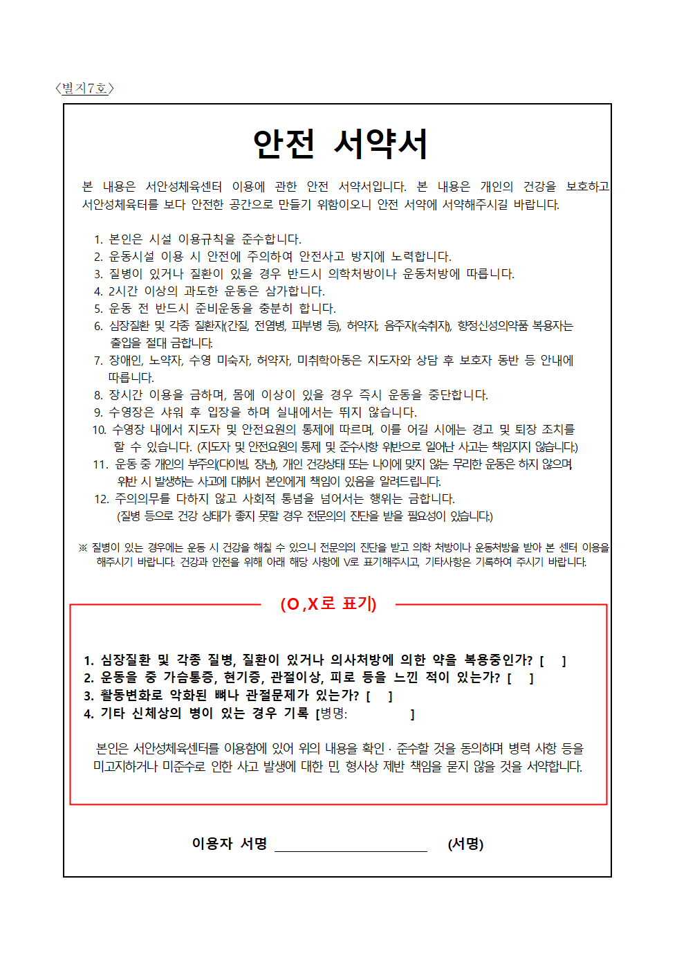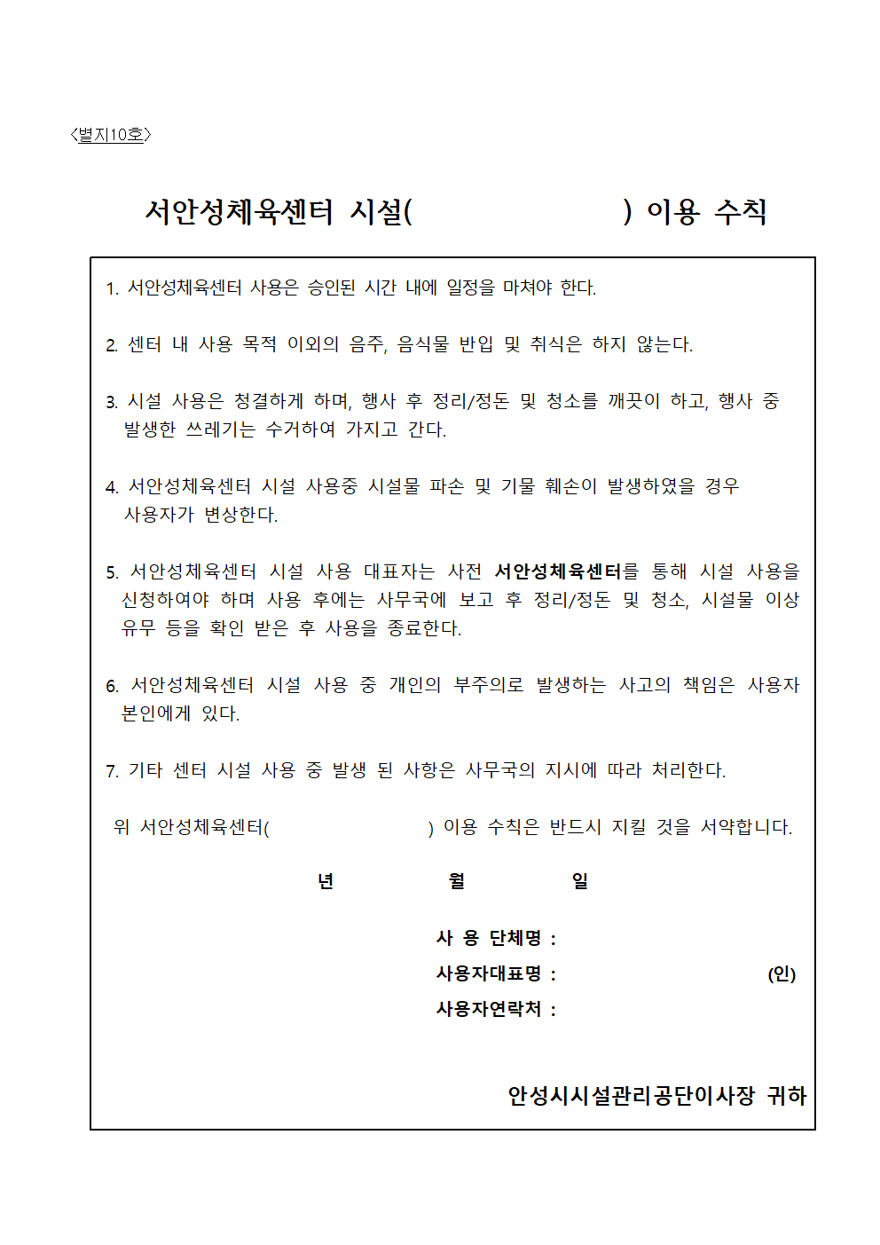 서안성체육센터 이용규칙