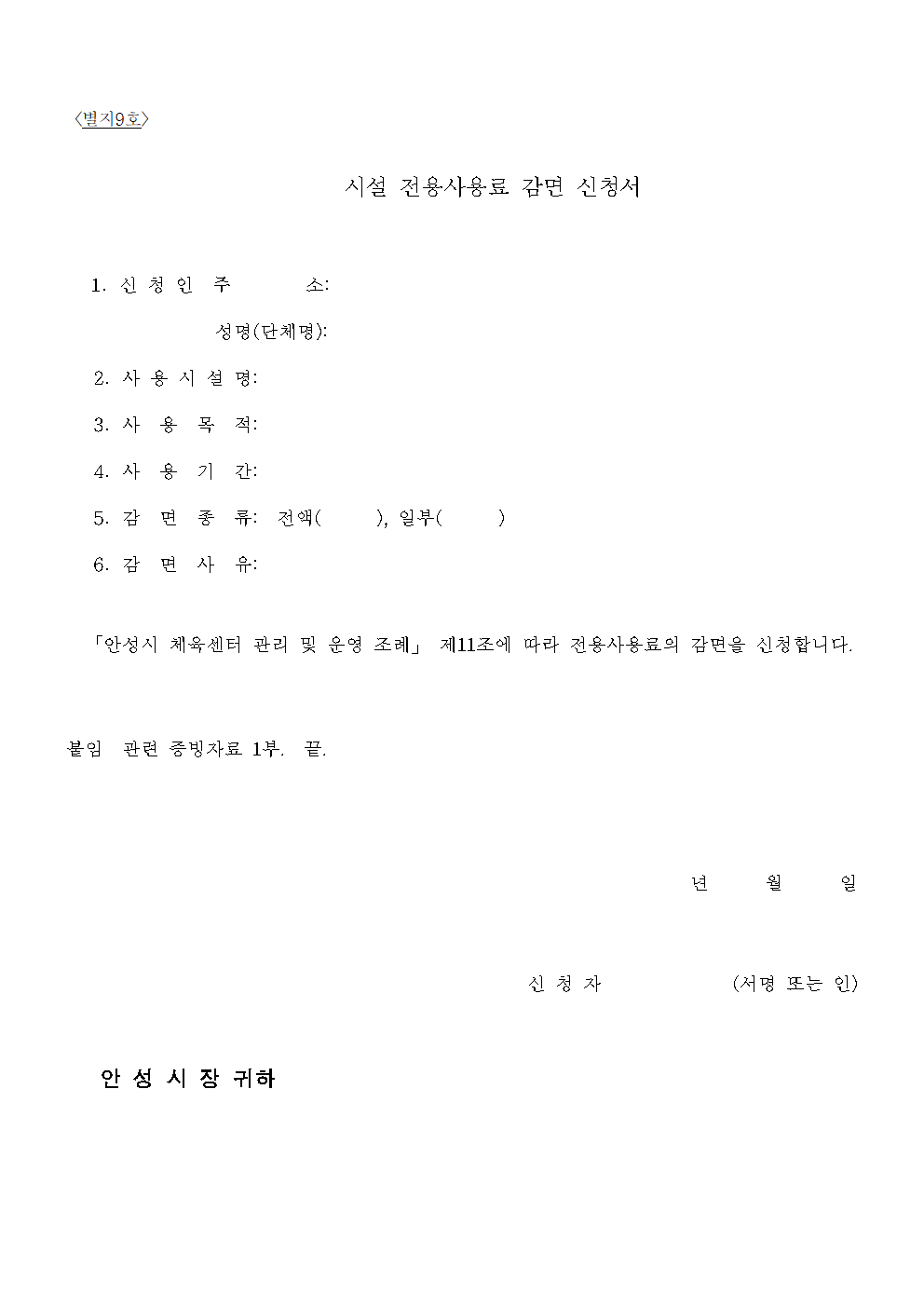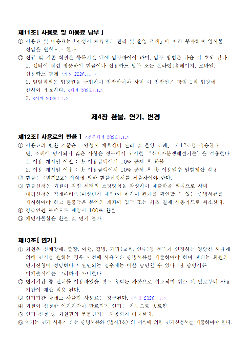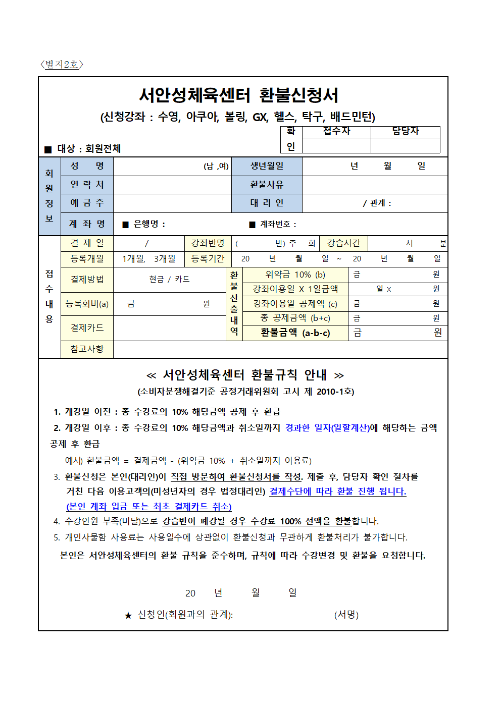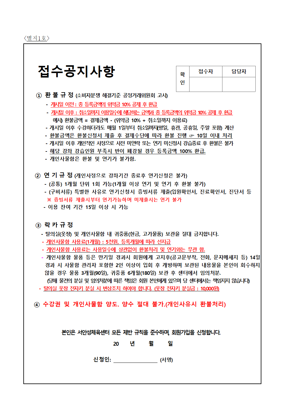 서안성체육센터 이용규칙