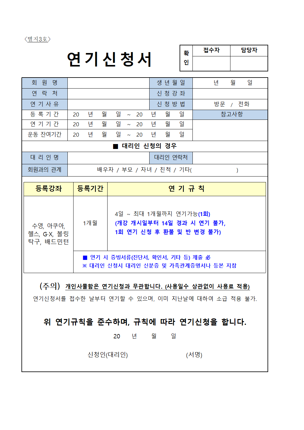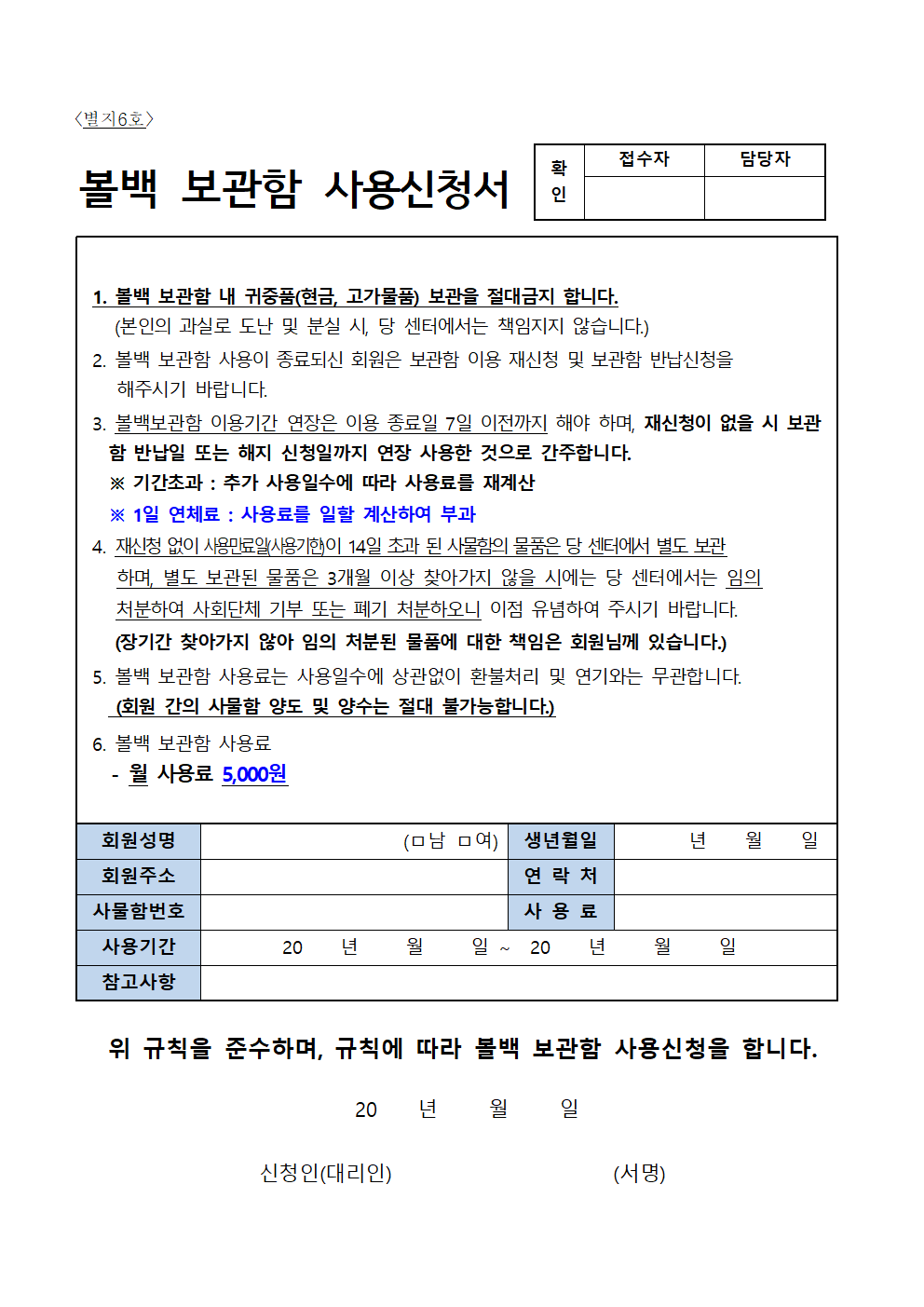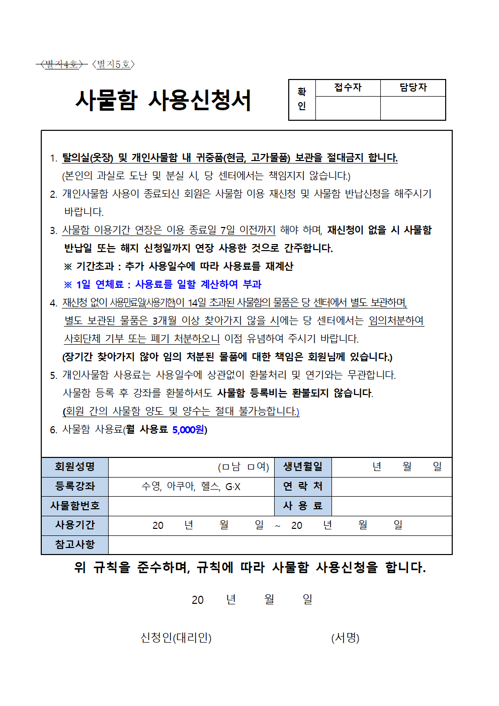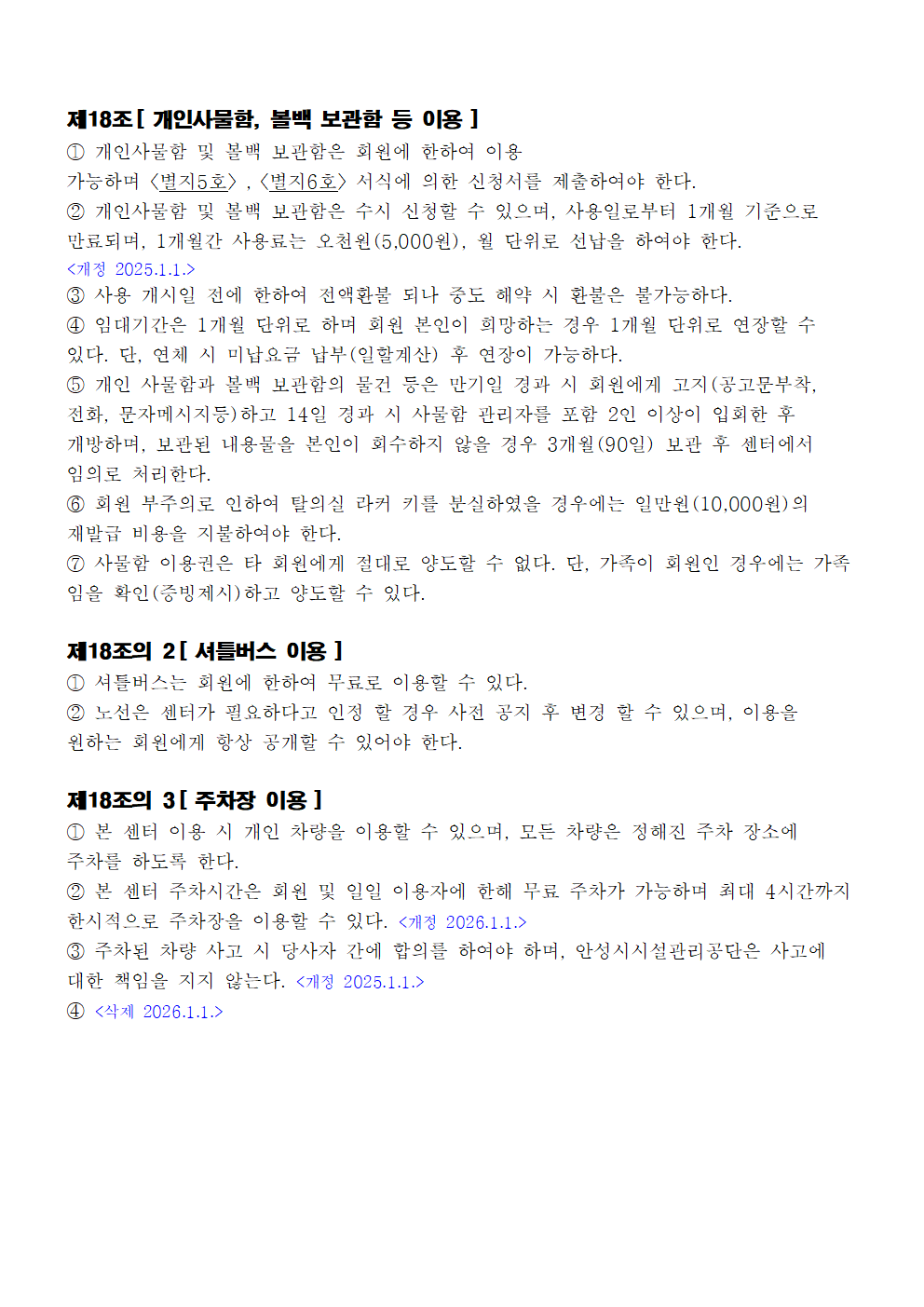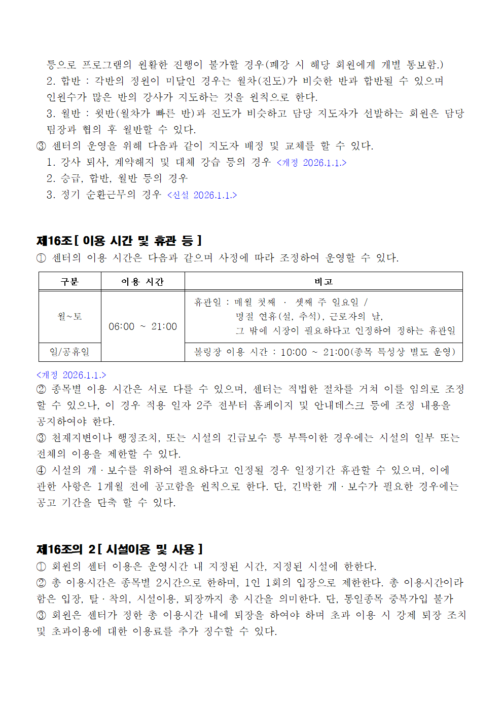 서안성체육센터 이용규칙